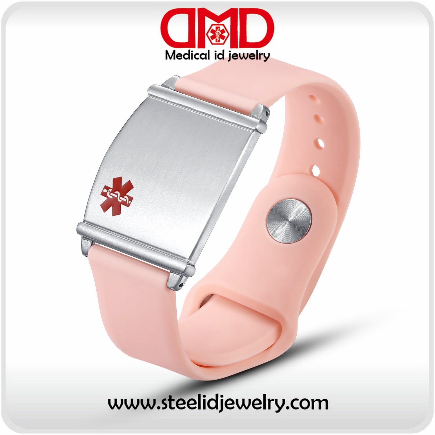 Adjustable Pink Sport Silicone loops Medical alert bracelets for men-MD1454PK