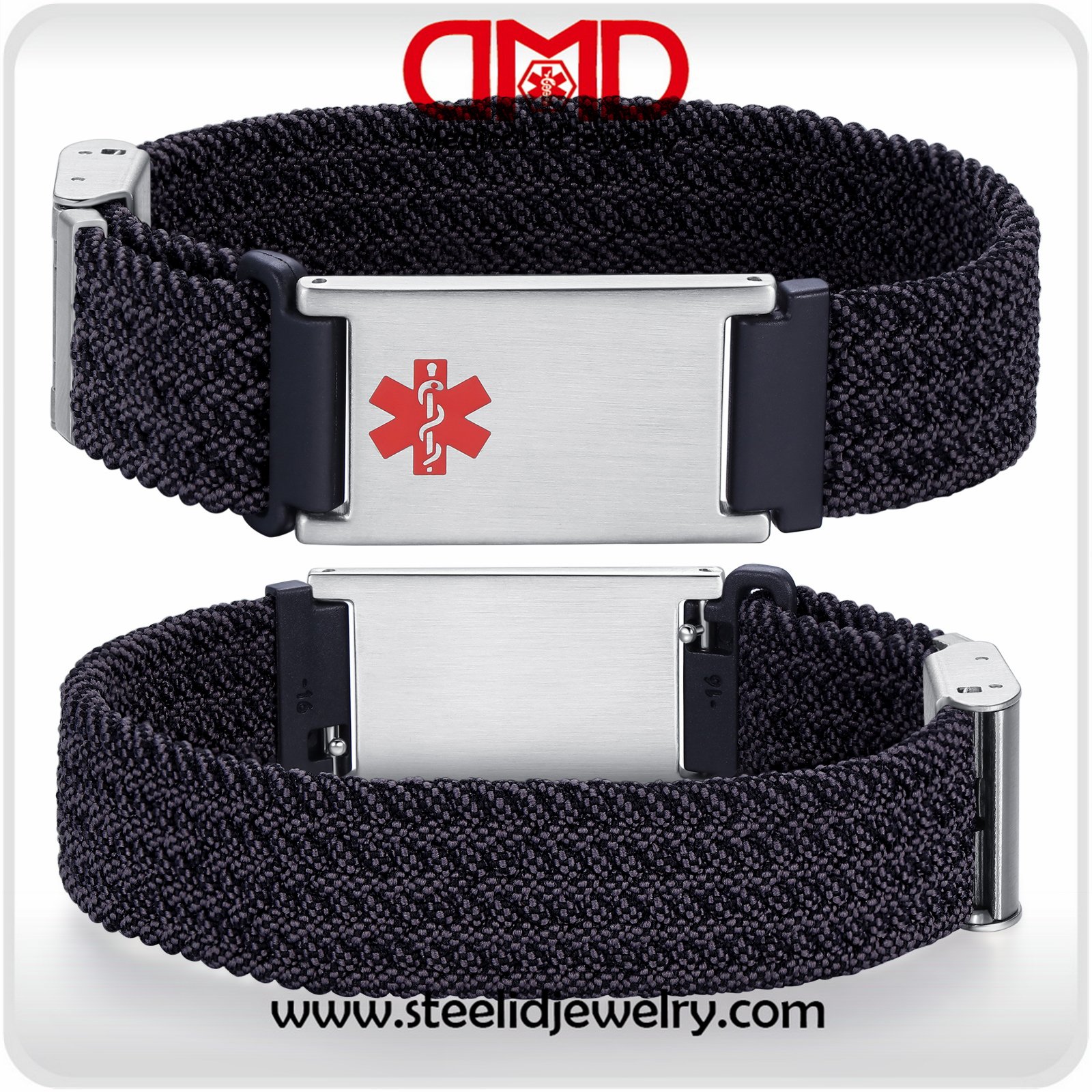 Adjustable Sport Stretch loops Medical alert bracelets for women and children-MD1471-grey