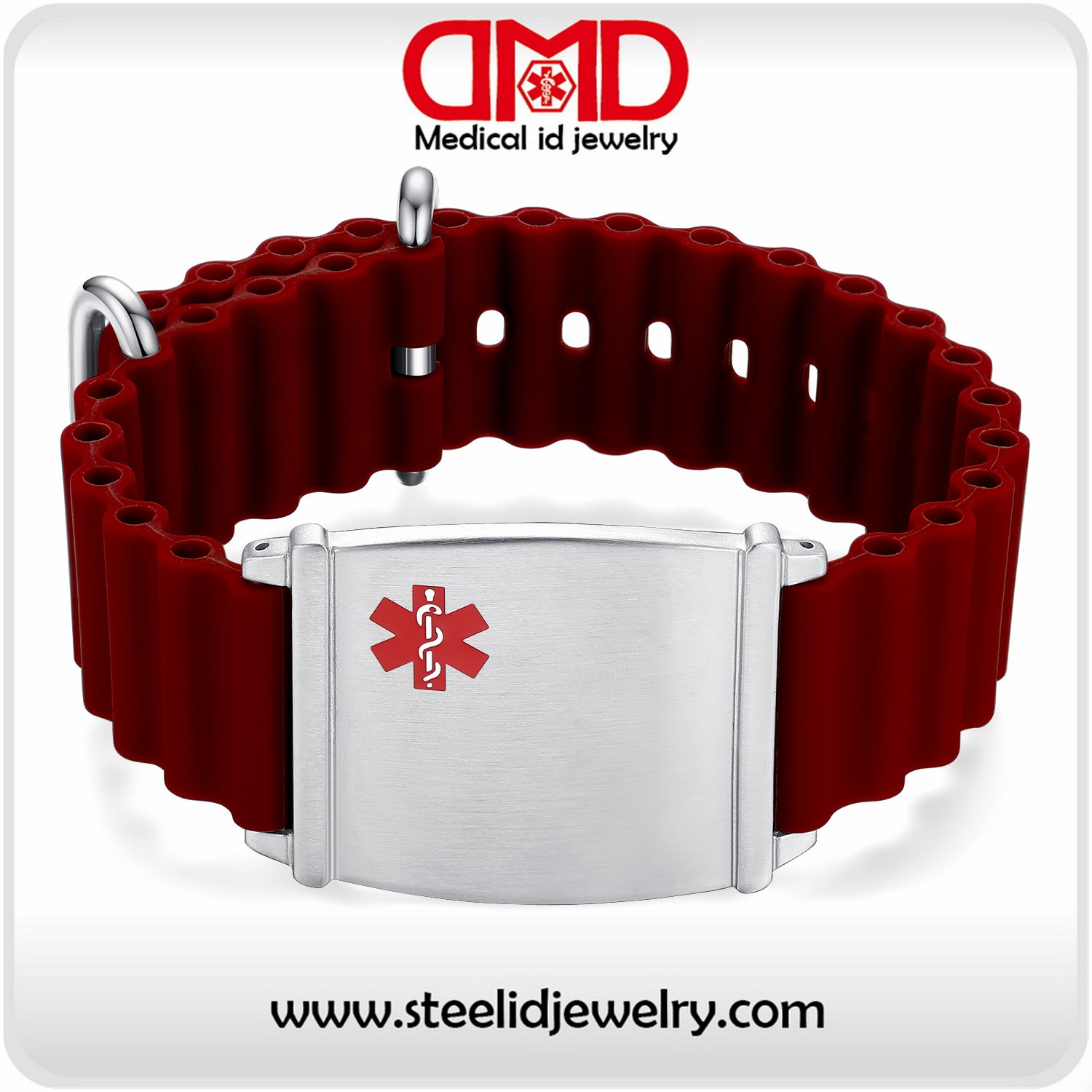 Deep red Adjustable Silicone Sport ocean Medical alert bracelets for men and women-MD1470-DRED