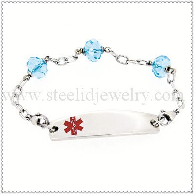 This bracelets combine with chains, 3 pcs Aqua crystals, red symbol ID plaques, very fashion and clear.