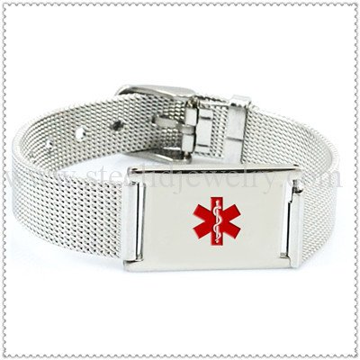 Durable, surgical-grade stainless steel ID is easy to care for and the most scratch resistant of metals Stainless steel mesh bands – 8.5” with adjustable sizing Identity ID bracelet.
