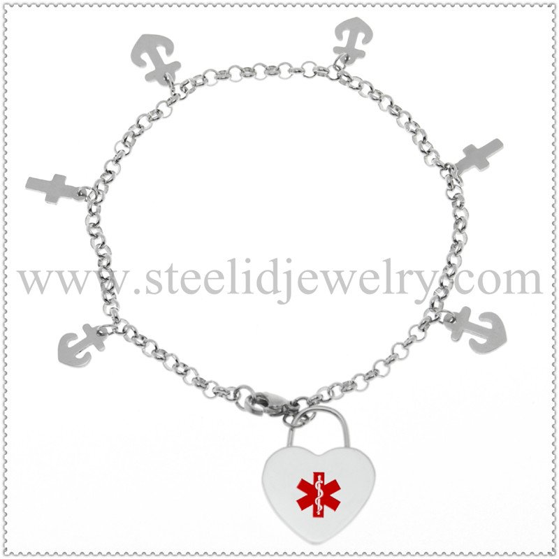 Stainless steel heart links bracelet with pink ribbon ID plate-MD0201P