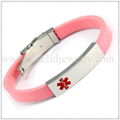 The leather medical ID bracelet in pink color, very stylish & clear, suit for the spring & summer season.