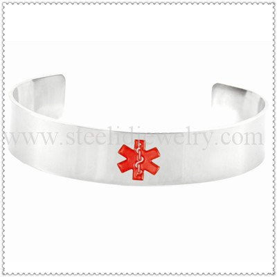 9mm width steel cuff bracelet with red ID symbol, 62mm diameter, color can be plated as gold, rose-gold, black…