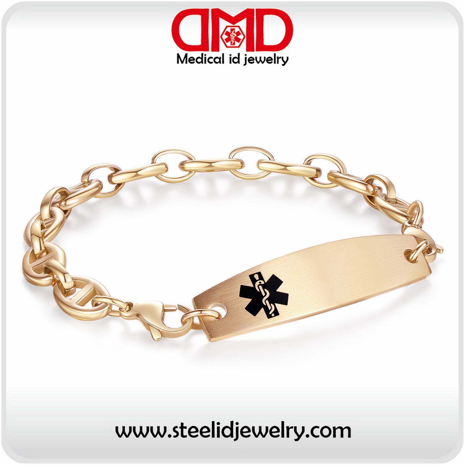 Interchangeable gold H chain medical id bracelets for women -MD1455G