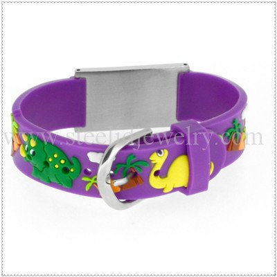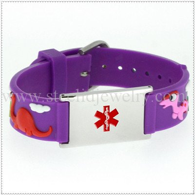 14mm 3D rubber bands with 3/4″ W x 1″ L medical id plaques, 195mm length, 1 size suit for all ages kids.