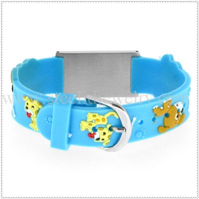 Adjustable, watch-style PVC Band, 316L surgical stainless steel plate, fits wrist sizes 5 1/2″ – 7 1/4″.