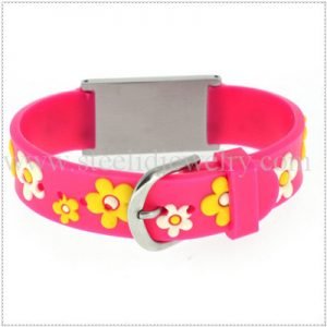 14mm rubber bands with 3/4″ W x 1″ L medical id plaques, 5 lines engraving, 195mm length.