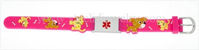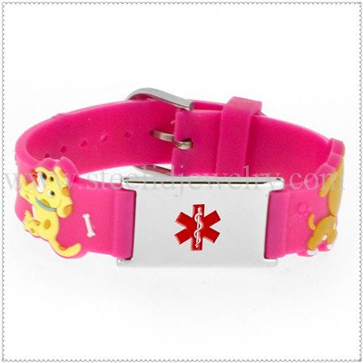 14mm rubber bands with 3/4″ W x 1″ L medical id plaques, 195mm length, 1 size suit for all ages kids.