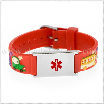 This rubber id bracelet is the nice gifts for the little fans, which with bus, car, bubble car…