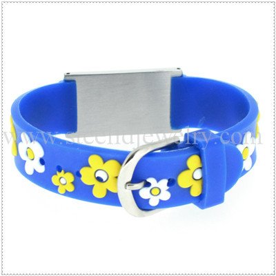 14mm rubber bands with 3/4″ W x 1″ L medical id plaques, 5 lines engraving, 195mm length.