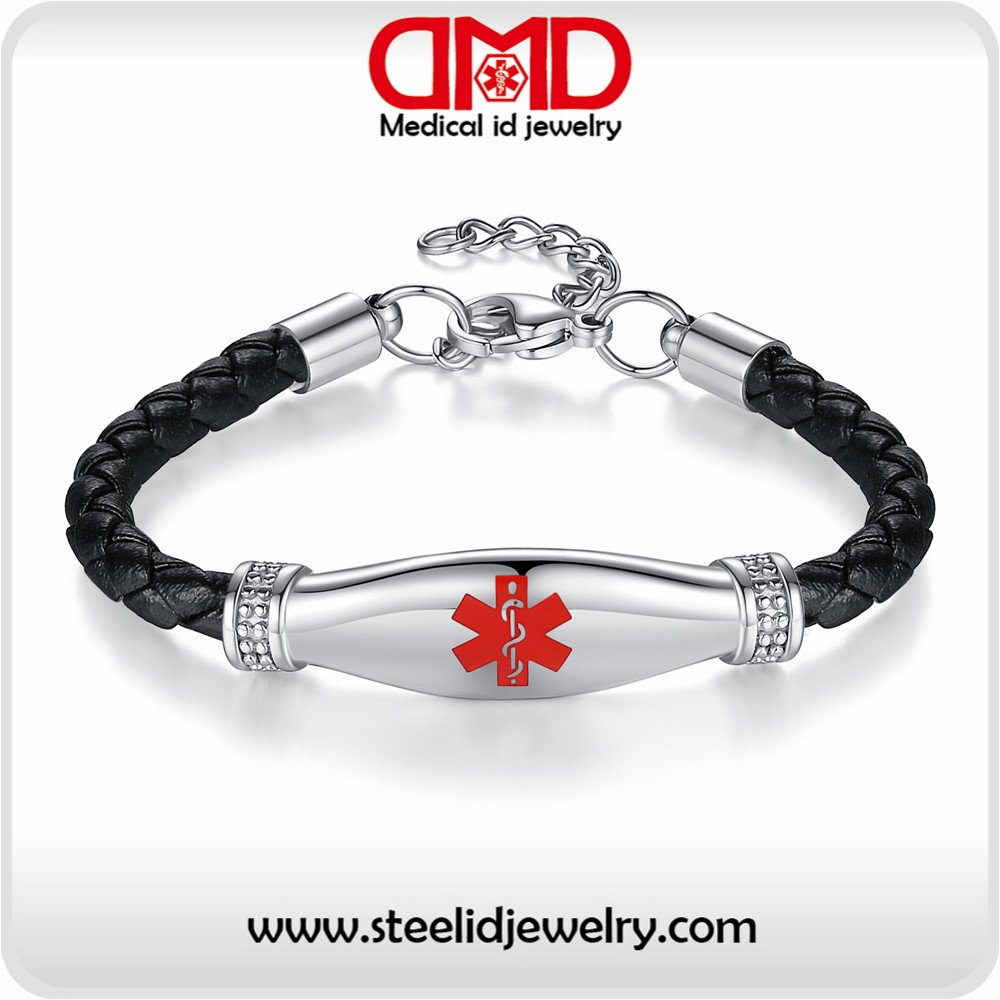 Leather Stainless steel Medical id bracelets for Women-MD1199SB