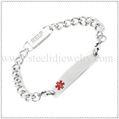 8mm chain chains with 11mm*30.5mm help plate and 11.5mm*45mm long curved medical id plate, 7″~8.5″ length, can be customized.