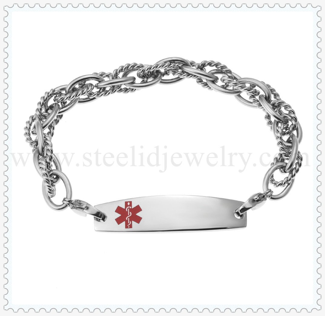 Double-track pure stainless steel Medical Alert Bracelet-MD0345
