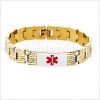 Stainless steel id tags with a red enamel medical symbolism, 14mm width tags back enough engrave more medical information,7-8.5 “adjustable length can be applied to different parts of the male consumer,Acceptable bulk customized engraving information, symbolic, LOGO