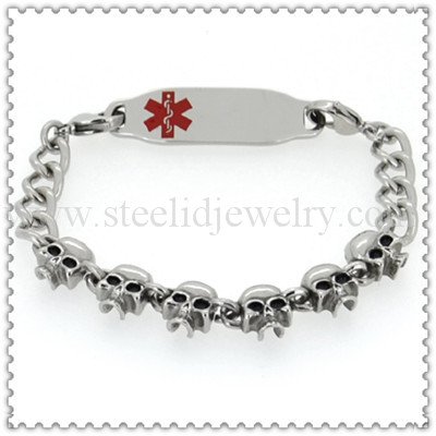 The bardian and hip-hop skull links medical ID bracelet is very popular to the Yong guys and the guys who like Hip-hop style.
