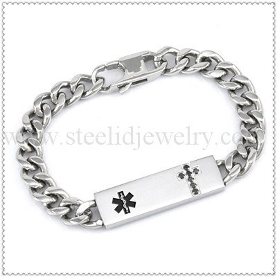 10mm steel chain bracelet with a 12mm* 55.5mm id plate,CNC set cross Crystal, 7~8.5″ length, can be customized.