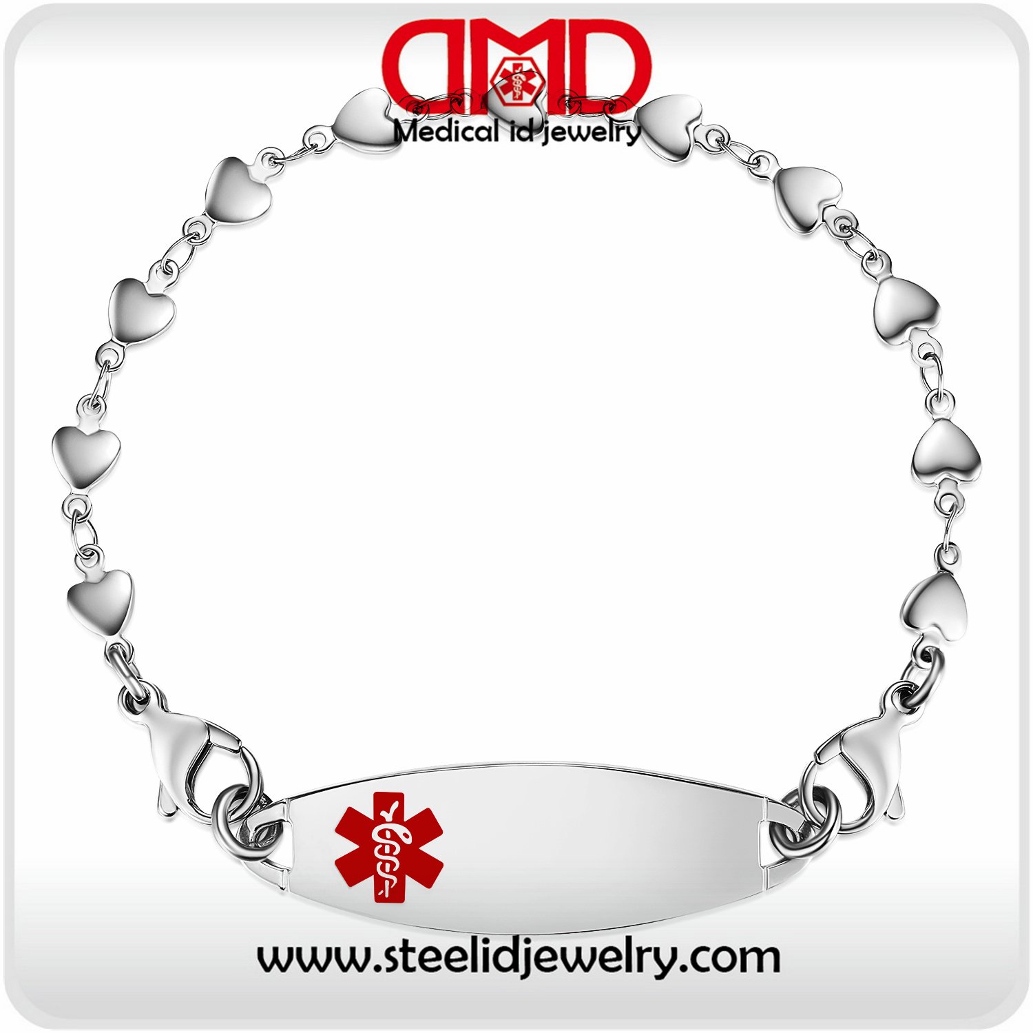 Stainless steel heart chain Medical alert bracelets for women-MD1472SS