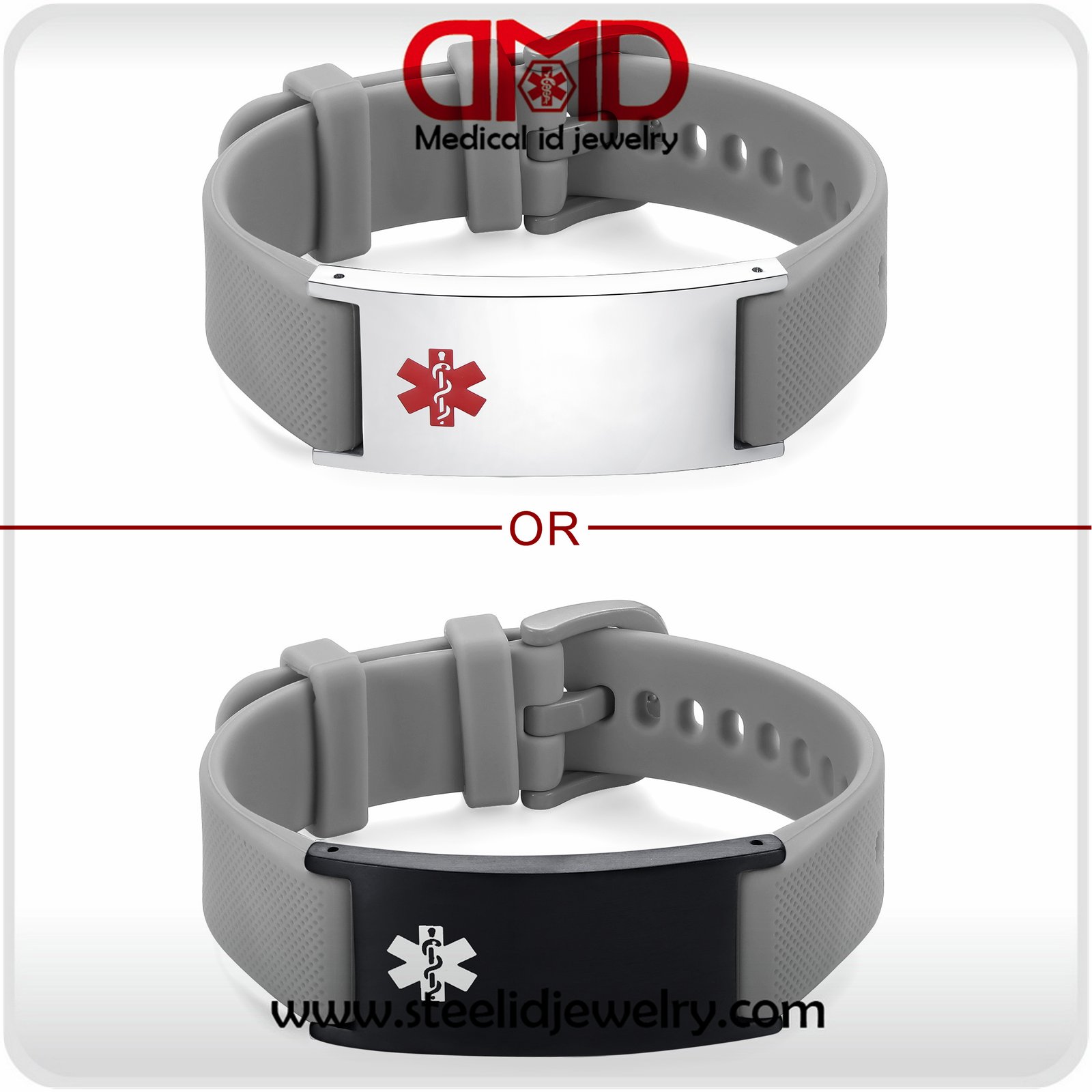 With quick release silicone band sport medical id bracelets for men-grey-MD1467-grey