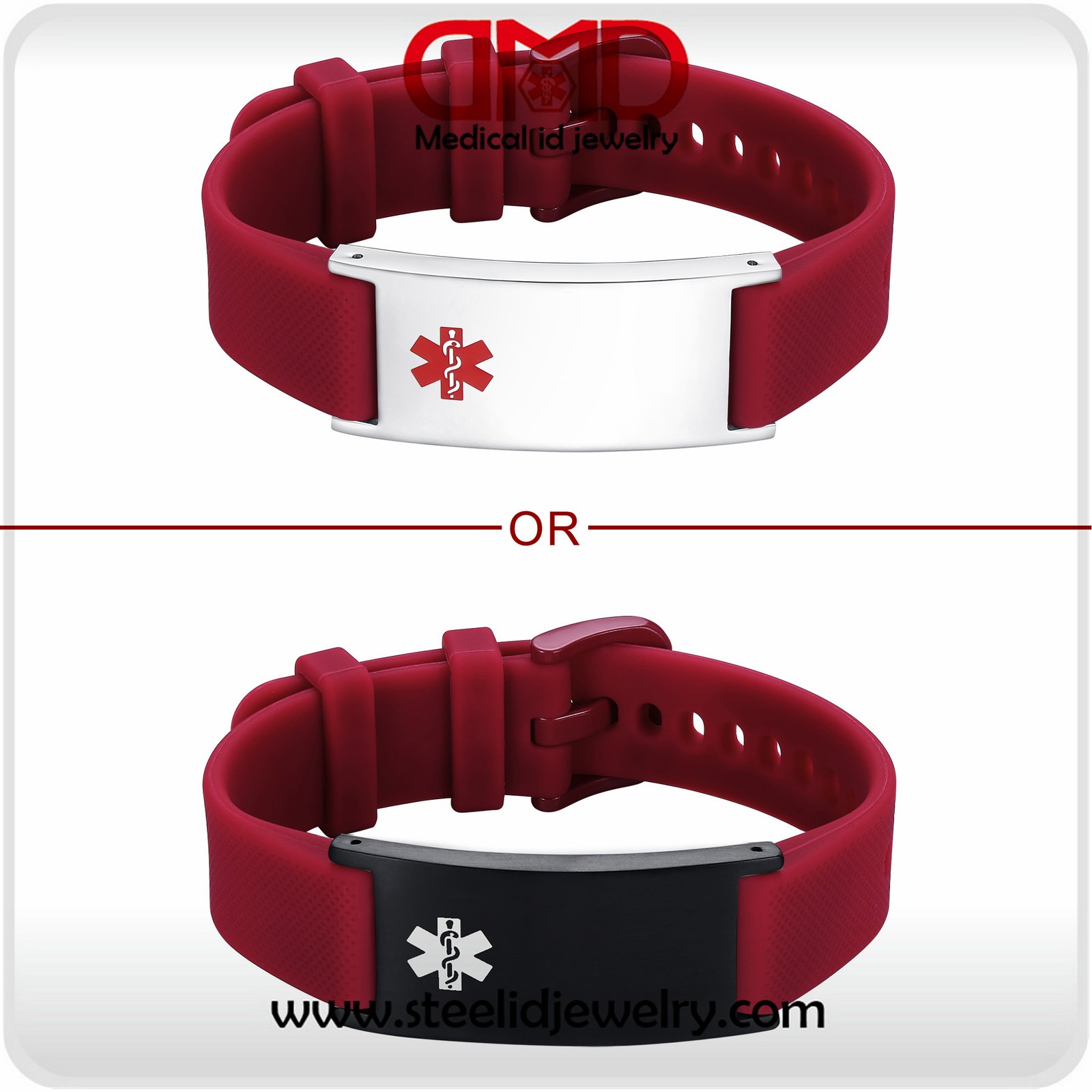 With quick release silicone band sport medical id bracelets for men-Red-MD1467-Red