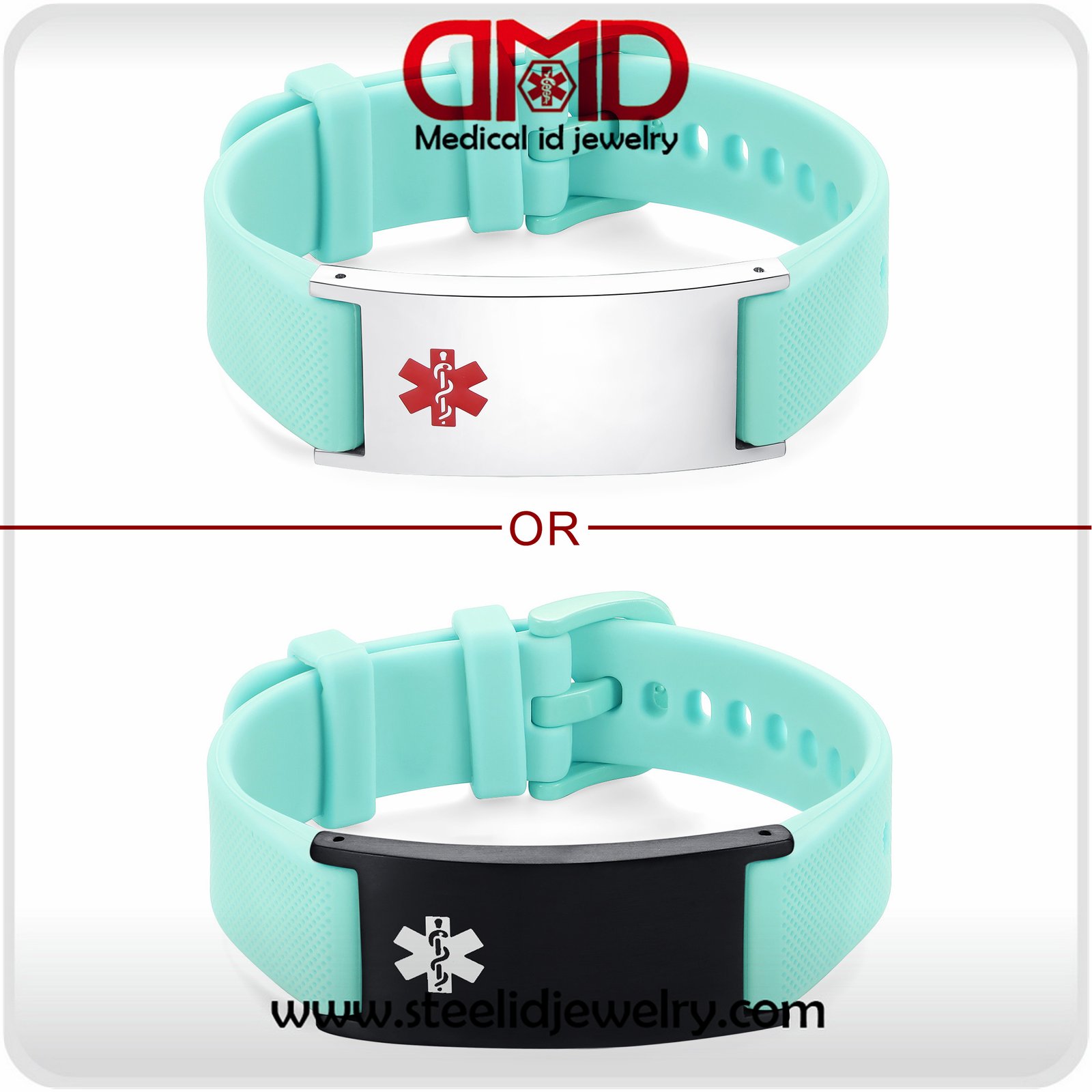 With quick release silicone band sport medical id bracelets for men-Teal-MD1467-Teal