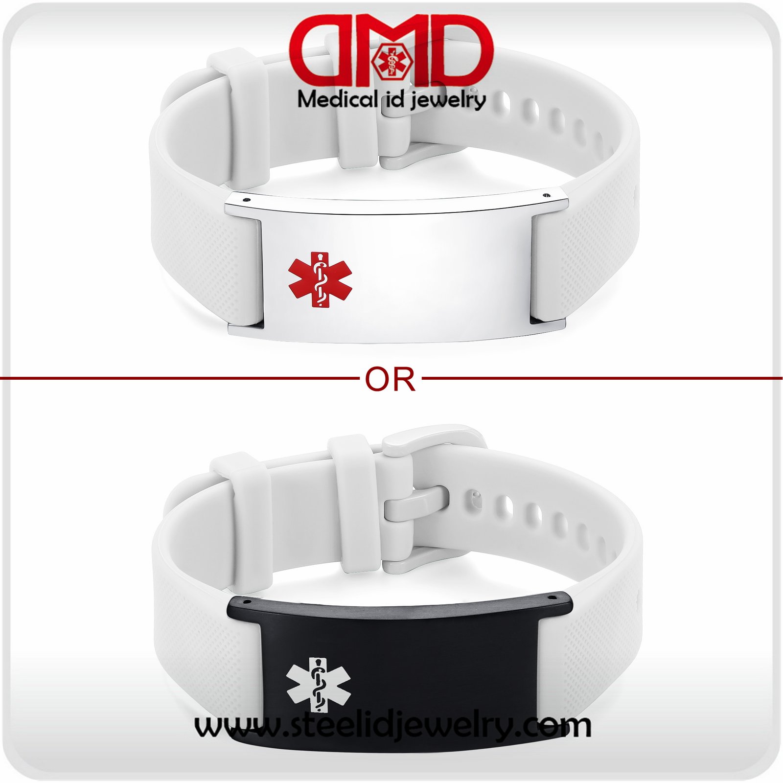 With quick release silicone band sport medical id bracelets for men-White-MD1467-WT