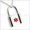 316L stainless steel cute round lock design id charm, can engrave info on whole backside.