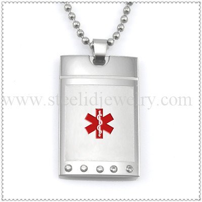 316L stainless steel shiny & brush medical ID dog tag with 5 pcs clear crystal.