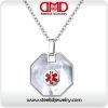 Stainless steel Octagon inlay carbon fiber Medical alert charm neckalce-MP0269SC